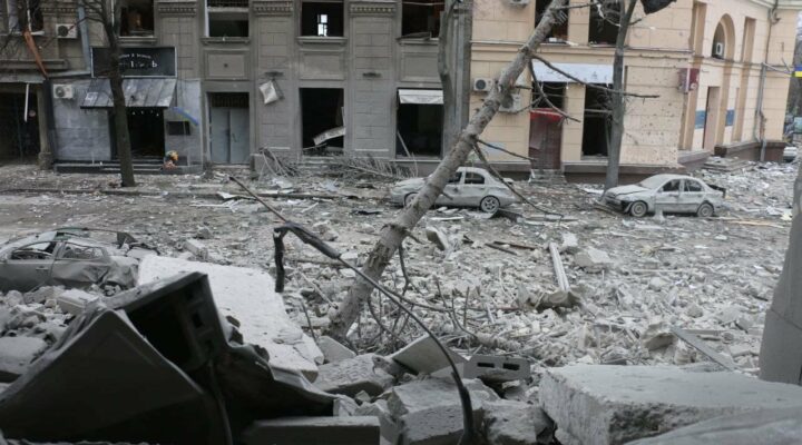 Kharkiv, ville ukrainienne détruite par les bombardements russes. Source : Mvs.gov.ua, CC BY 4.0 , via Wikimedia Commons